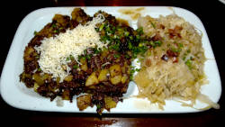 The restaurant serves traditional Viennese cuisine, with dishes such as Wiener Schnitzel (the real thing!), roast pork, smoked pork, suckling pig and cellar platter. Famous Viennese pastries such as Topfenstrudel, Sachertorte and Kaiserschmarren are also on the menu. The restaurant describes itself as a Heuriger restaurant, which means that there is live music every evening from 7 pm and that the menu includes various Austrian wines.