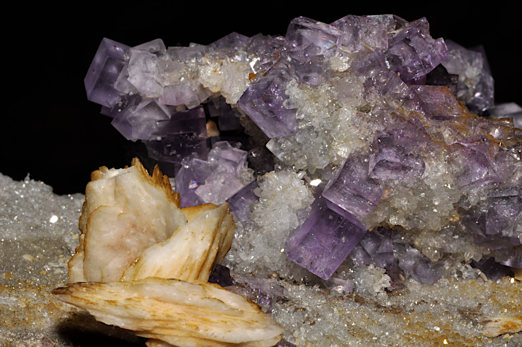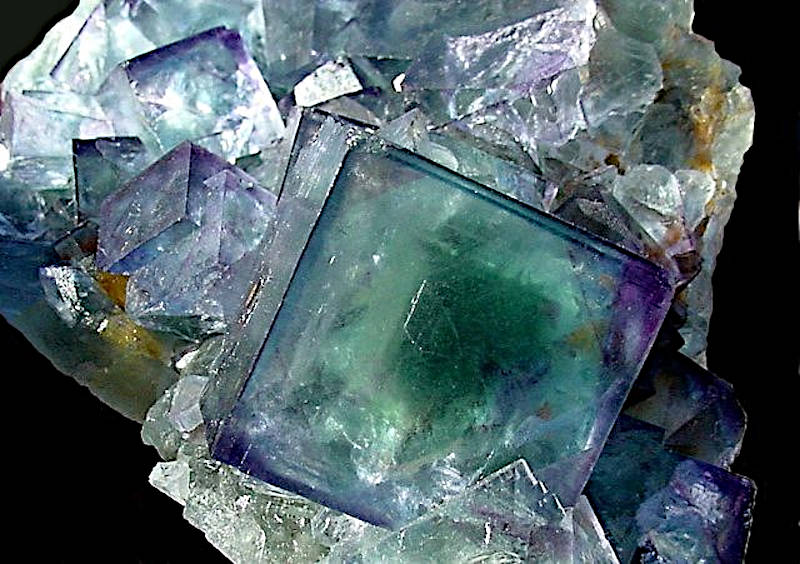 Fluorite (CaF2) or fluorspar is a halide mineral composed of calcium and fluor. It is found in various different colours including colorless, white, purple, blue, green, yellow, orange, red, pink, brown, and bluish black. Actually it has been dubbed the most colorful mineral in the world. Most common are purple, blue and green, and the mineral is commonly zoned. The spar part of the name is a result of its tendency to form plain surfaces when it is broken.