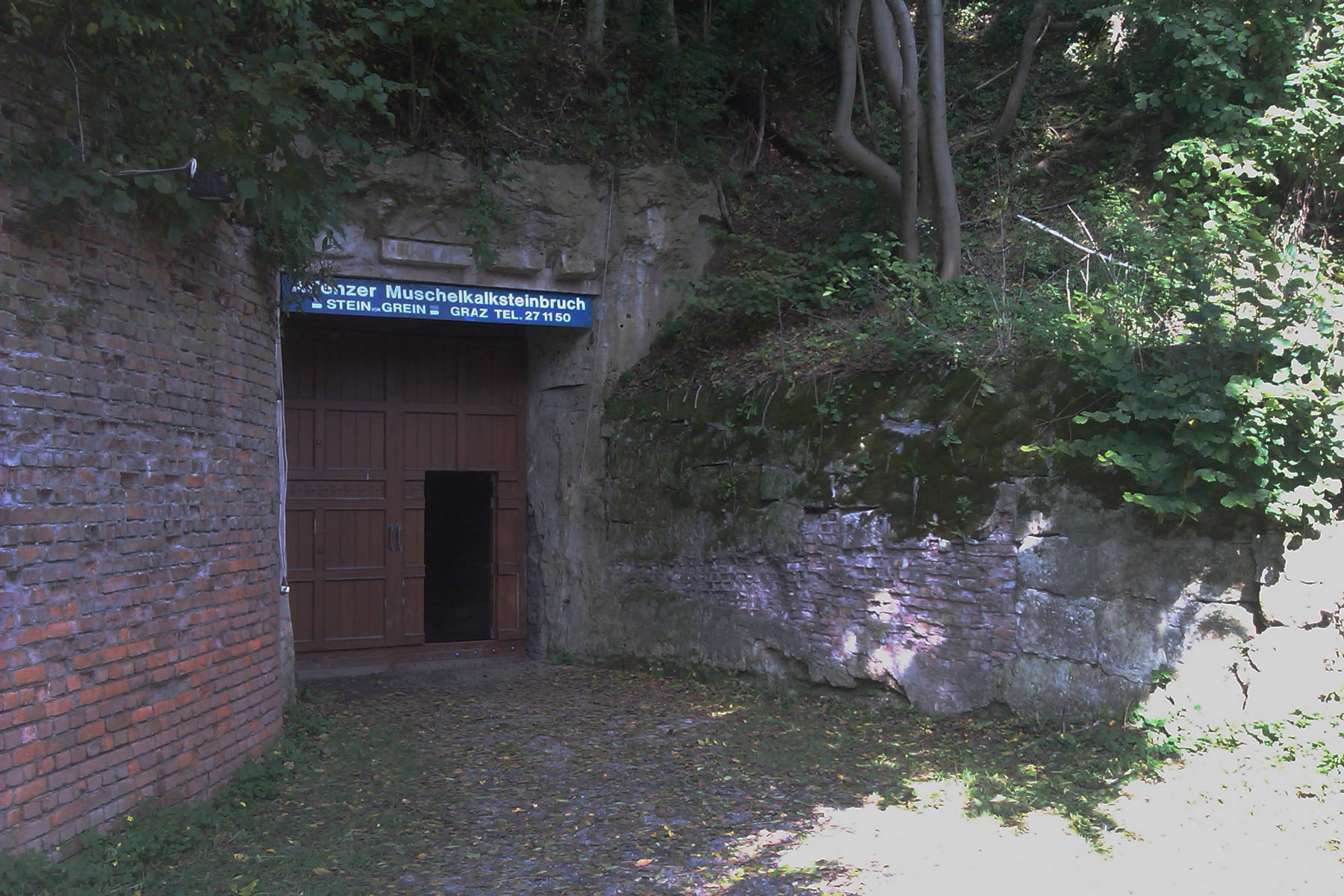 Ein ganz unrühmliches Kapitel der Geschichte war das Ende des Zweiten Weltkriegs. Als die Luftangriffe der Alliierten zunahmen, wurde kriegswichtige Produktion soweit möglich in den Untergrund verlagert. Das bedeutet, dass auch der Steinbruch hier als unterirdische Fabrik genutzt wurde. Ein Zweigbetrieb der Thondorfer Flugzeugwerke Steyr Daimler Puch wurde in den Berg verlegt. Dies musste sehr schnell geschehen, und so wurde das Konzentrationslager Aflenz als Außenlager des KZ Mauthausen eingerichtet. Die Gefangenen wurden als Zwangsarbeiter eingesetzt, dabei starben über 5,0000 Menschen. Dabei wurden nicht nur die existierenden Steinbrüche weiterverwendet, es wurden auch Hallen aufgefahren, ein Pfeilerbau mit etwa 20.000 m² Grundfläche. Außerdem wurden Stollen durch den Hügel hinüber an das Sulmufer gebaut, vermutlich um den Transport von Rohstoffen und Produkten per Schiff zu erleichtern. Die Sprengmaßnahmen beim Bau haben diesen Bereich jedoch nachhaltig geschädigt, die Stollen wurden deshalb verfüllt. Nach Kriegsende versuchten die Alliierten alle militärischen Anlagen zu stören, in der Regel durch Sprengung. Auch hier war dies geplant, doch abgesehen davon, dass es sehr schwer und aufwändig ist eine große unterirdische Anlage zu zerstören, haben die britischen Besatzer den Wert des Steins erkannt. Das ging auf eine Intervention von Univ.Prof.Dr. Alois Kieslinger zurück, der für das österreichische Bundesdenkmalamt arbeitete. Der Abbau wurde wieder aufgenommen, die Steine wurden für den Wiederaufbau von im Krieg zerstörten Gebäuden benötigt. Danach wurde der Steinbruch jedoch stillgelegt.