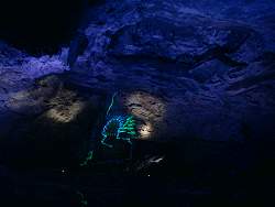 Cave have a canvas, white walls and speleothems. They have a light system, and additional lamps are rather easily installed. And it’s possible to install a sound system, which works outdoors, underground. So there is actually no difficulty in making such a show underground, and with a little automation its possible to make it automatic, the guide presses a butt, the show runs for five minutes, and the tour continues. Its important that the show is not too long, the visitors have to stand in the damp and cool cave without moving. Typically, it is as long as the piece of music which is used, so probably 3 to 5 minutes.