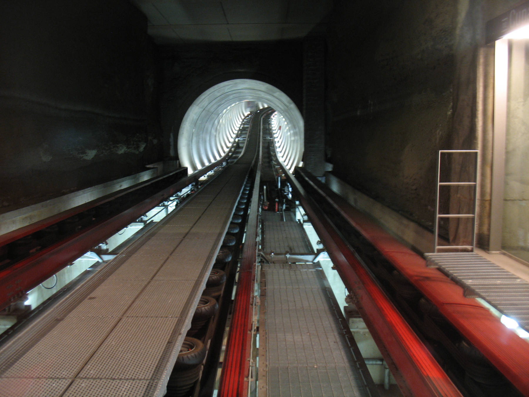 The system rather new, because it allows to add and remove carts from the rope depending on demand. It also allows carts to stop at stations while people enter and leave the cart while the main cable still pulls all the other carts. The system is rather easy to automate and drivers are not required. Less technology in the cart means they are far cheaper, it’s affordable to have more additional carts for peak times. It is possible to be very flexible concerning the amount of people, by just increasing the amount of carts on the rope with no additional drivers needed. The current maximum capacity of the system is around 8,000 passengers per hour, it is used by about 10,000 passenger per day, which is quite a lot for a town the size of Perugia. The system is very interesting for cities which need smaller subway systems and want to reduce the cost of a subway system.