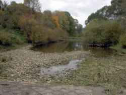 Es versickert einfach über eine längere Strecke im Kies im Flußbett.