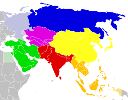 Asien ist der größte Kontinent, ist aber tatsächlich nur ein Teil der größten Landmasse Eurasien. Die Definition von Kontinenten ist kulturell begründet, es gibt weder geografische noch geologische Regeln für die Definition eines Kontinents. Schlussendlich beruht es auf politischen Grenzen und historischen Ereignissen genauso stark wie auf geografischen Grenzen. Asien wird meist in sechs Teile geteilt, Nordasien, Zentralasien, Vorderasien (auch Westasien), Südasien, Ostasien, und Südostasien. Eine mögliche Definition von Asien ist Nordasien, Zentralasien, plus Ostasien. Vorderasien wird auch als Naher Osten bezeichnet, der Iran mit Südasien (Indien) als Mittlerer Osten. Zudem sind die Begriffe in Deutschland und in englischsprachigen Ländern nicht übersetzbar, weil sie unterschiedliche Grenzen besitzen, da kommt sogar Wikipedia ins stolpern. Und auch Südostasien wird mal dazugezählt und mal nicht.